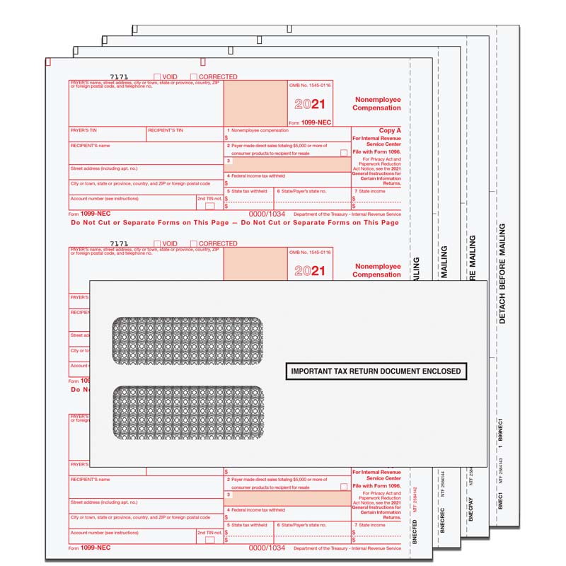 2021 1099 Nec Nonemployee Compensation Preprinted 4 Part 2 Up Taxpacks With Envelopes Self Seal And 1096 Transmittal Forms Qty For 10 Nonemployees Irs Approved Compatible With Quickbooks Walmart Com